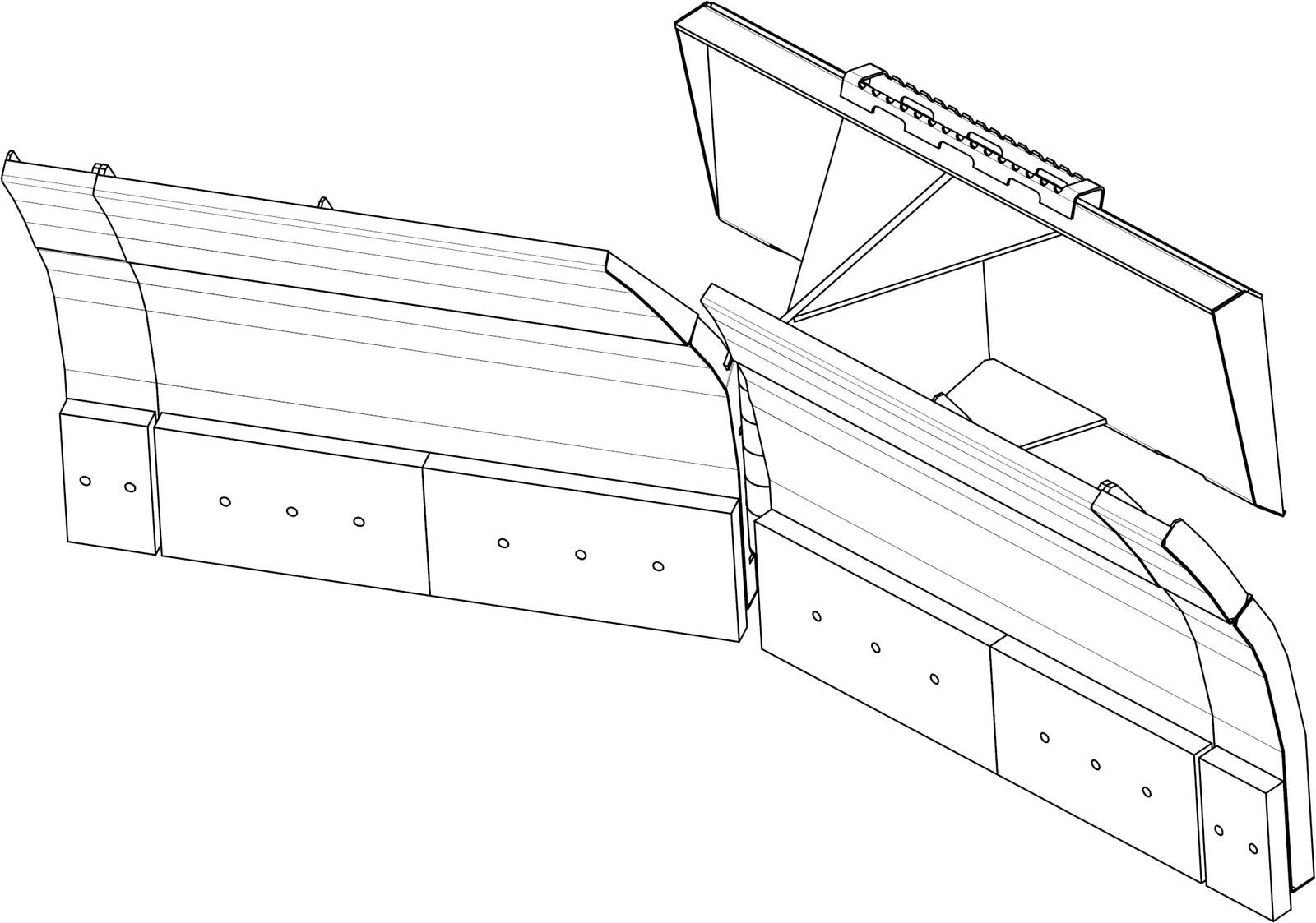 - V-образный снегоуборочный отвал имеет особую конструкцию отвала.
