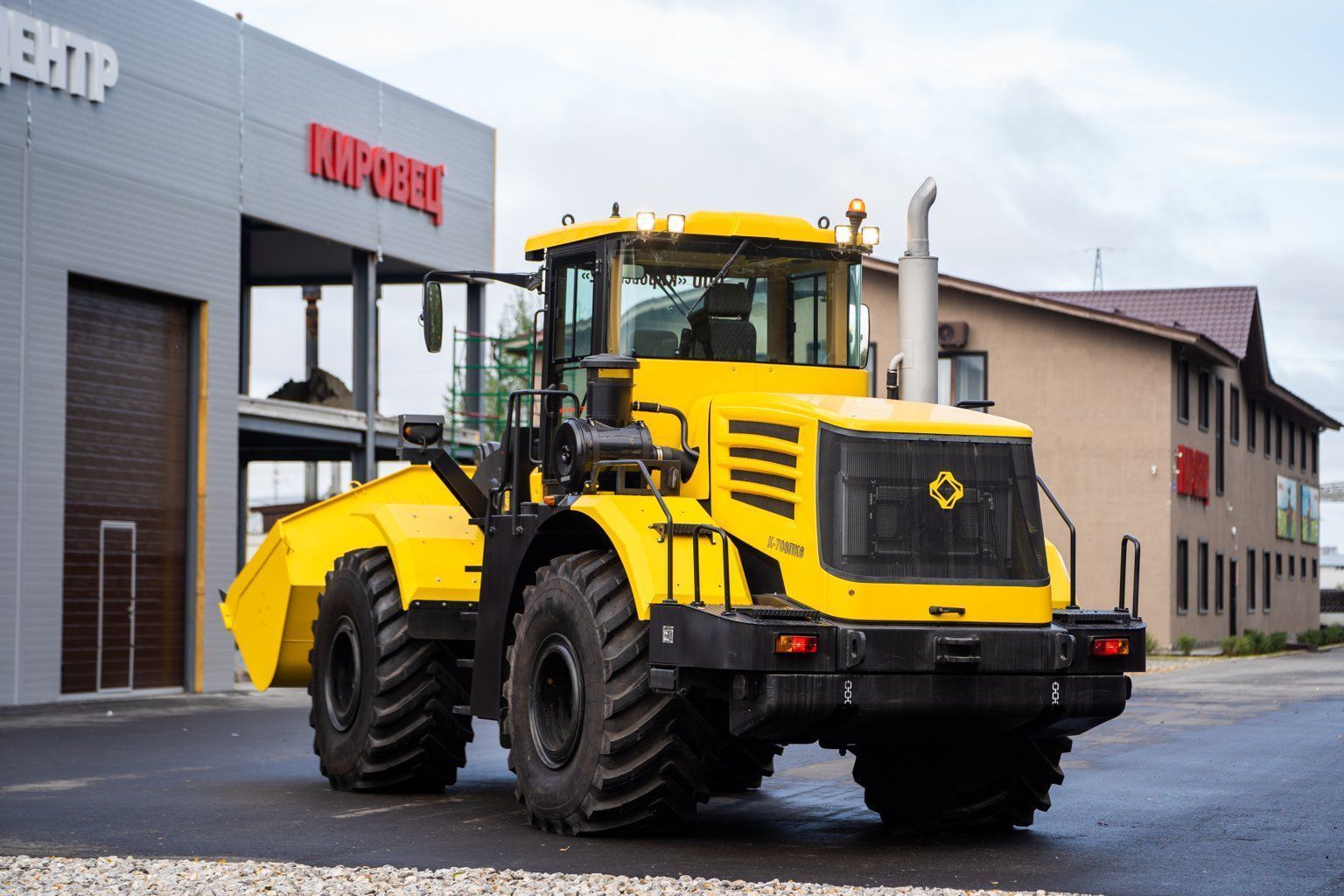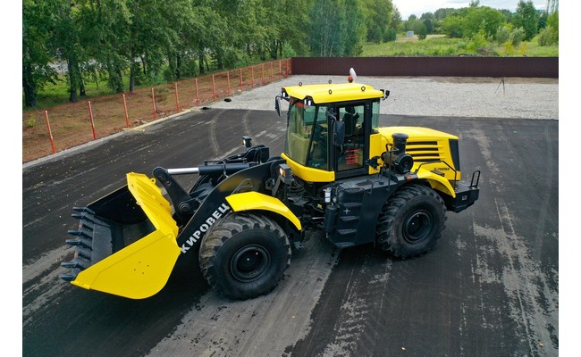Новый фронтальный погрузчик "Кировец" модели К-708ПК6 предназначен для использования на погрузочно-разгрузочных работах с сыпучими и кусковыми материалами без предварительного их рыхления, выполнения землеройно-транспортных работ на грунтах до III категории с выгрузкой материала в отвал или транспортные средства.